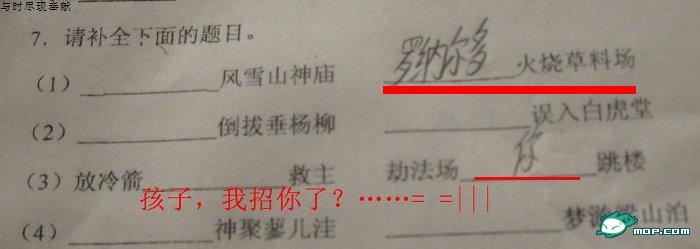主题:[转帖]见习老师时拍到的中学生雷人试卷! |