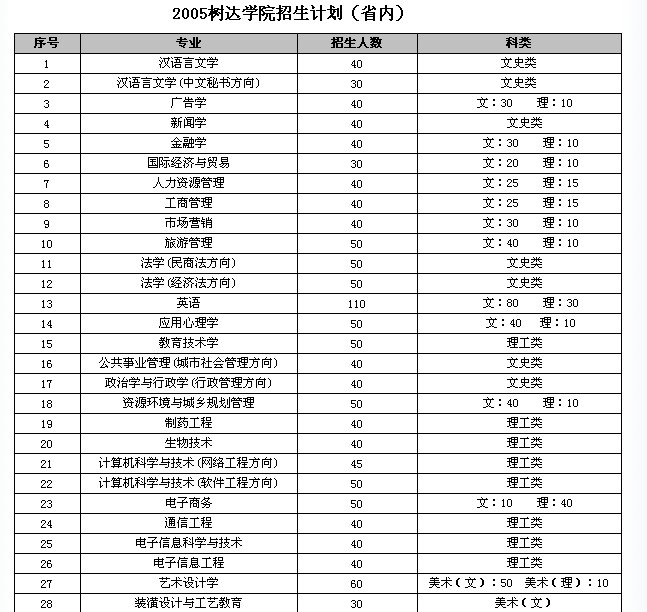 主题:关于树达学院的一些资料...招生计划等..介绍.. |