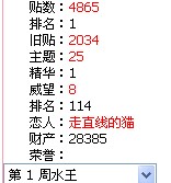 等级:小五 主题:1 精华:0 贴子:350 排名:267 威望:0 排名:0 注册:2006/7/5 22:26:11 近访:2007/5/10 23:32:35 |