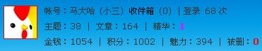等级:高一 主题:35 精华:0 贴子:910 排名:164 威望:1 排名:538 注册:2006/1/14 9:23:27 近访:2010/5/4 21:31:45 |