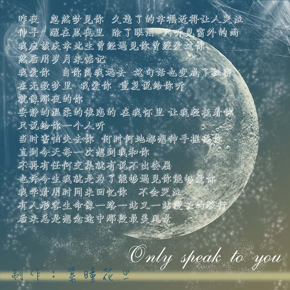 ![]() 我也是偶尔翻相片/才想起同桌的你/谁娶了多愁善感的你 忘不了你溜溜的长发/忘不了你深深的牵挂/会说话的哑巴 如果失去是苦/你还怕不怕付出/好多事情是后来才看清楚天若有情天亦老/如果你是我的传说/让她天长地久/追梦/ 海-誓-山-盟-倒-不-如-好-好-保-重 |