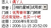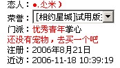 等级:初二 主题:18 精华:0 贴子:607 排名:185 威望:1 排名:538 注册:2006/11/13 2:17:34 近访:2007/2/27 4:52:22 |