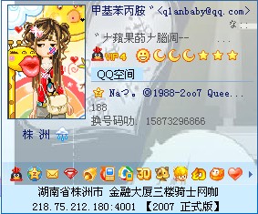 等级:初三 主题:40 精华:0 贴子:721 排名:128 威望:1 排名:538 注册:2005/10/5 15:02:00 近访:2010/7/17 12:09:00 |