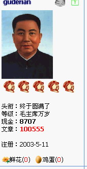 等级:院士 主题:194 精华:4 贴子:42790 排名:1 威望:55 排名:14 注册:2006/3/9 23:27:58 近访:2010/12/17 23:30:45 |