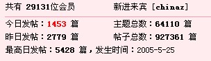 等级:宝宝 主题:1816 精华:8 贴子:23716 排名:55 威望:154 排名:1 注册:2004/1/17 22:36:00 近访:2025/12/3 10:20:10 |